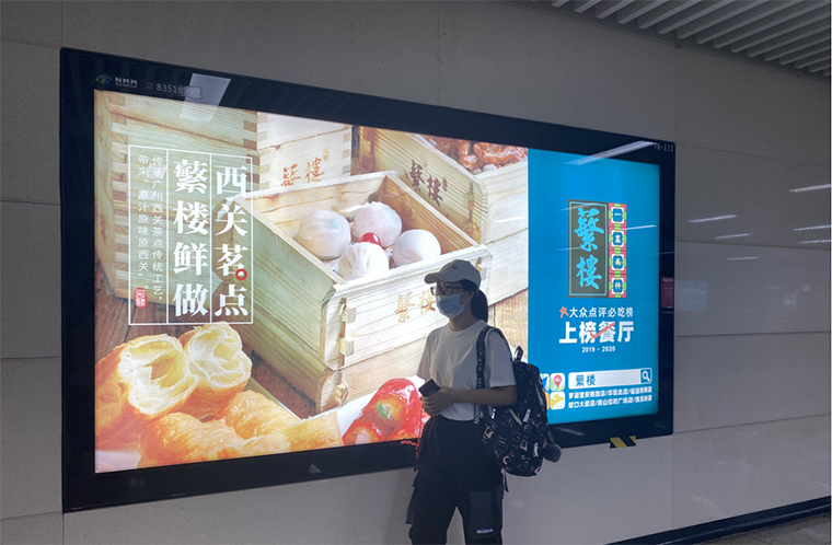 在廣告宣傳推廣中,我們在地鐵站設計了高精度海報廣告,將蘩樓蝦餃作為畫面主圖,文案則宣傳蘩字的意義和出處,讓消費者產生興趣,記住蘩樓品牌。