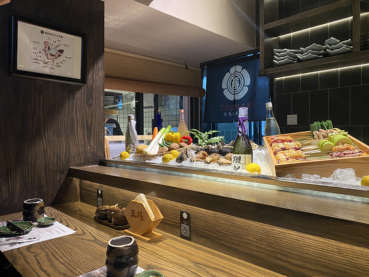 這是品牌設計和空間裝飾需要用自己的語言來講述的品牌故事。于是空間裝飾中用了日本江戶時代京都古建筑的元素,江戶時代的國花“椿花”,江戶時期京都地道燒鳥的選料與料理技法,把